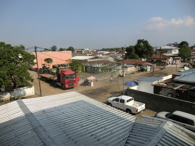 Vid tolvtiden var vi i Kinshasa men blev stående i ett trafikstopp ungefär en timma. Trots polisens tappra försök att lösa upp knutarna så tog det tid. Gatubyggnaderna hänger inte med utökning av bilparken. Sedan har väl kongoleserna den egenheten att tryck på lite för häftigt, det gör att det blir riktigt tillkorkat ibland, bil intill bil tätt packade, ingen har det minsta lilla svängrumme.