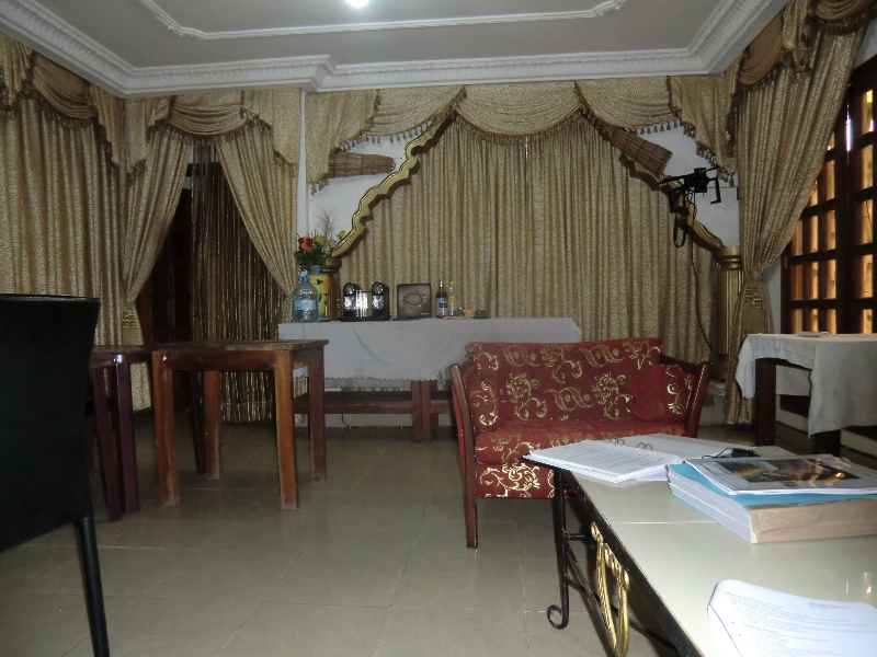 Vi har nu installerat oss här på hotell Comfort. Vi har gjort inordning den sal där vi ska hålla till i med våra utbildare. Vi satsar nu på att utbilda utbildare som ska arbeta med entreprenörskap uti i byarna. Hotellet gör väl inte fullt ut skäl för namnet men det är ganska ok. Luftkonditionerade rum har vi. Vi har förstås inte haft något vatten i kranarna än, bara en lite vissen stråle som det nätt och jämt går att blöta ner händerna i. Men i kväll kl 9 kommer rörläggaren och då ska det bli ordning på hotellets vattenförsörjning.  De har egen brunn med egen vattenpump. Det ska bli skönt med lite svalka i duschen.