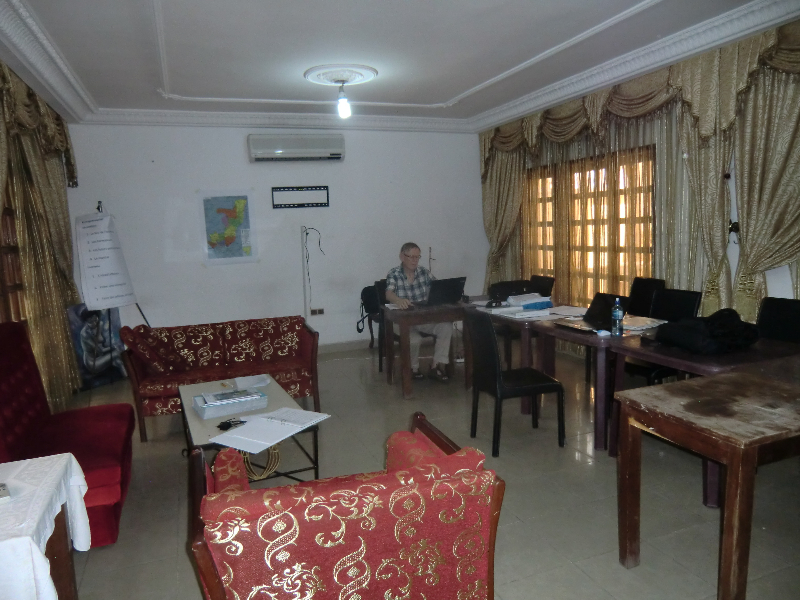 Sedan hade vi en genomgång med MP Annicet, José och Joseph. Vi överlämnade det utbildningsmaterial som jag sammanställt och gick igenom programmet för våra veckor här. Än så länge har vi ingen översättare från svenska till franska eller kikongo. Det får så länge bli engelska som översätts, Joseph talar engelska och kommer att översätta om det inte dyker upp någon annan. Vad vi förstår är förberedelserna för vårt besök ganska minimala. Jag har mailat över vad material som behövs men det verkar kommit bort någonstans. Det har nog hamnat i någon regnskog. Tanken var att vi skulle varit igång idag om inte visumen satt en käpp i hjulet, men nu verkar det ta ytterligare någon dag innan vi är igång. Det blir så mycket tuffare när vi väl fått fart på lektionerna.