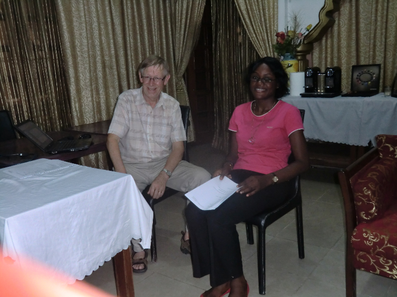 Vi var tillbaka vid fyratiden och middagen serverades med kyckling och ris med grönsaker. På det lite middagsvila och sedan dessa skriverier. Annicet är här och hans brorson Roy, studerat i Pretoria, Sydafrika och talar engelska, tolkade. Vi har lagt fast ett dagsschema för nästa vecka.