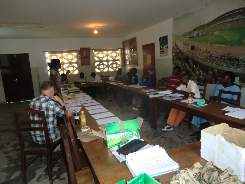Idag arbetade vi med produktionskalkyl och de skulle räkna fram kostnaden att bruka 5 hektar med maniok, majs och jordnötter. Det var svårare för våra vänner än vi trodde. De ville blanda ihop kostnader och intäkter. Det var också svårt att förstå de enheter som vi räknar med. T ex vad en mandag är, att det handlade om en dag och en arbetare var inte helt klart. Sedan är det inte helt lätt att få struktur på samtalet att en och en har ordet. Det vill gärna bli prat i mun på varandra och lite polsk riksdag över det hela. Men de lyssnar också när man kräver skärpning.