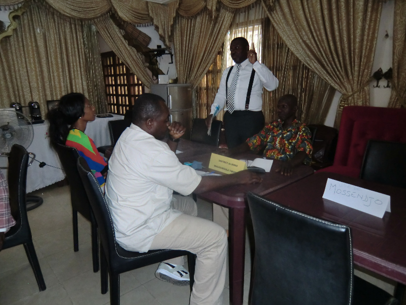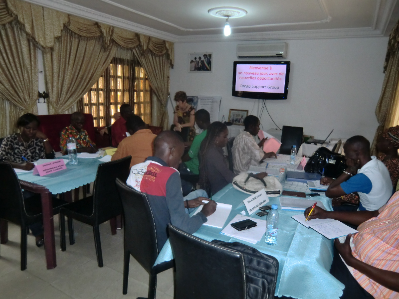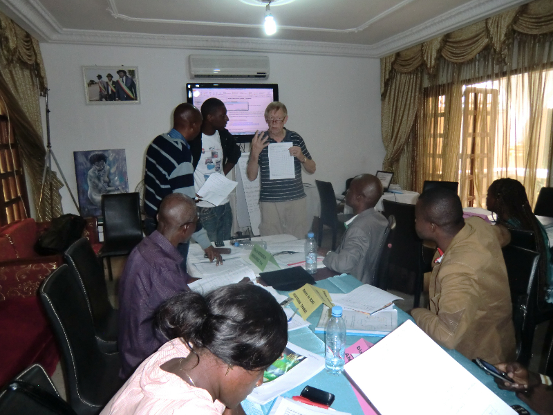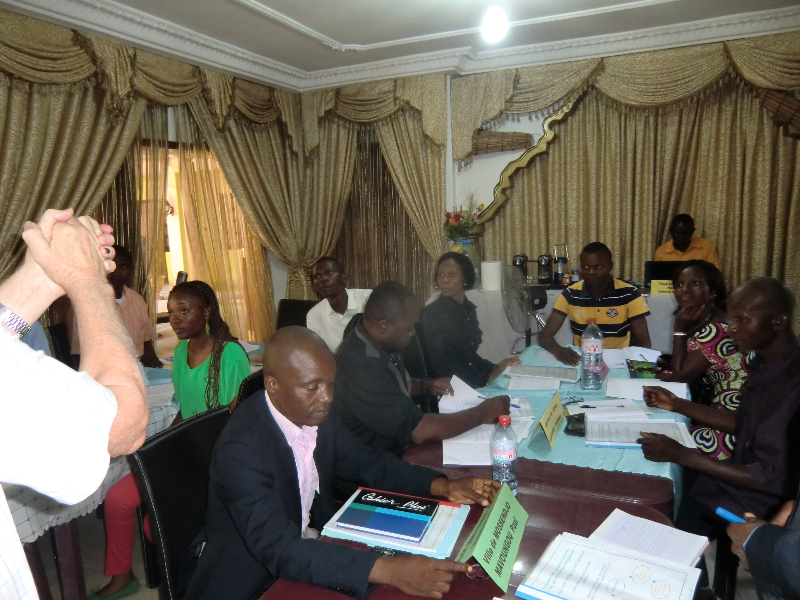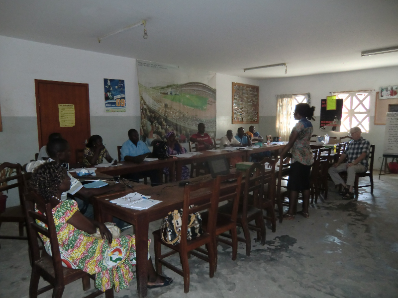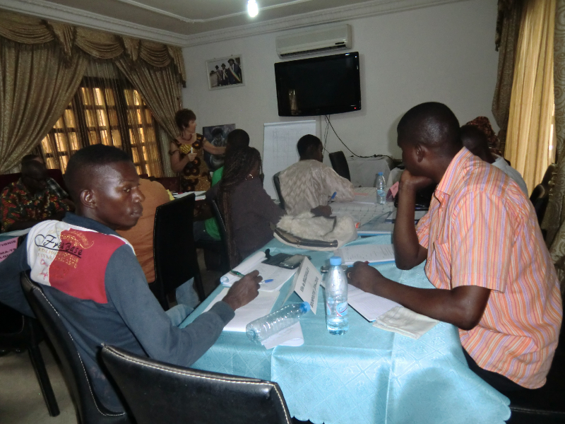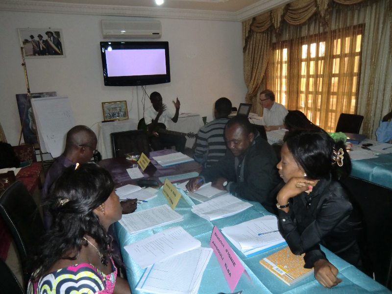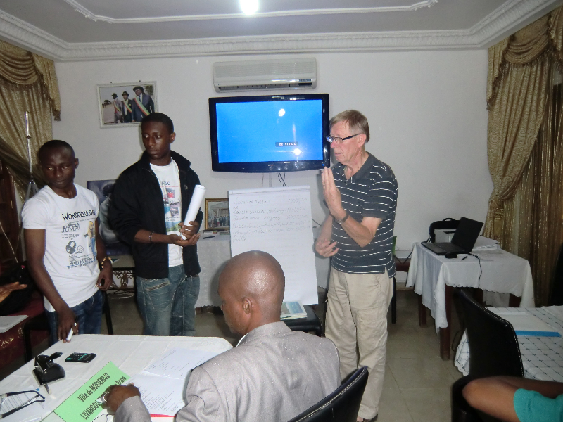 Efter en presentation gick vi igenom de två första kapitlen. Det första handlar om den plats de är ifrån och där de ska arbeta som utbildare. Vi försökte analysera vad det finns för resurser både naturresurser och mänskliga resurser. Hur ska de använda naturresurserna, förädla dem, ge dem mervärde som kan tilltala marknaden, och går att förvandla till pengar. De flesta är från landsbygden och det handlade mycket om odlingar men också skog. För de som är från Brazzaville och Point Noire gäller andra förutsättningar. Det kan handla om olika typer av service- och handelsföretag, t ex affärer, restauranger, frisörer, bilverkstäder och liknande, skriv- och bokföringsbyrå. Som hemläxa fick de med sig ett formulär där de ska redovisa möjligheter och svårigheter i deras verksamhetsområde.