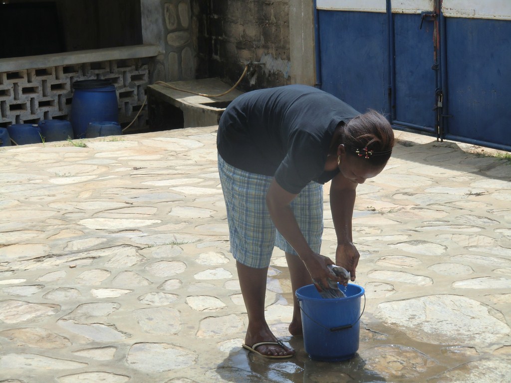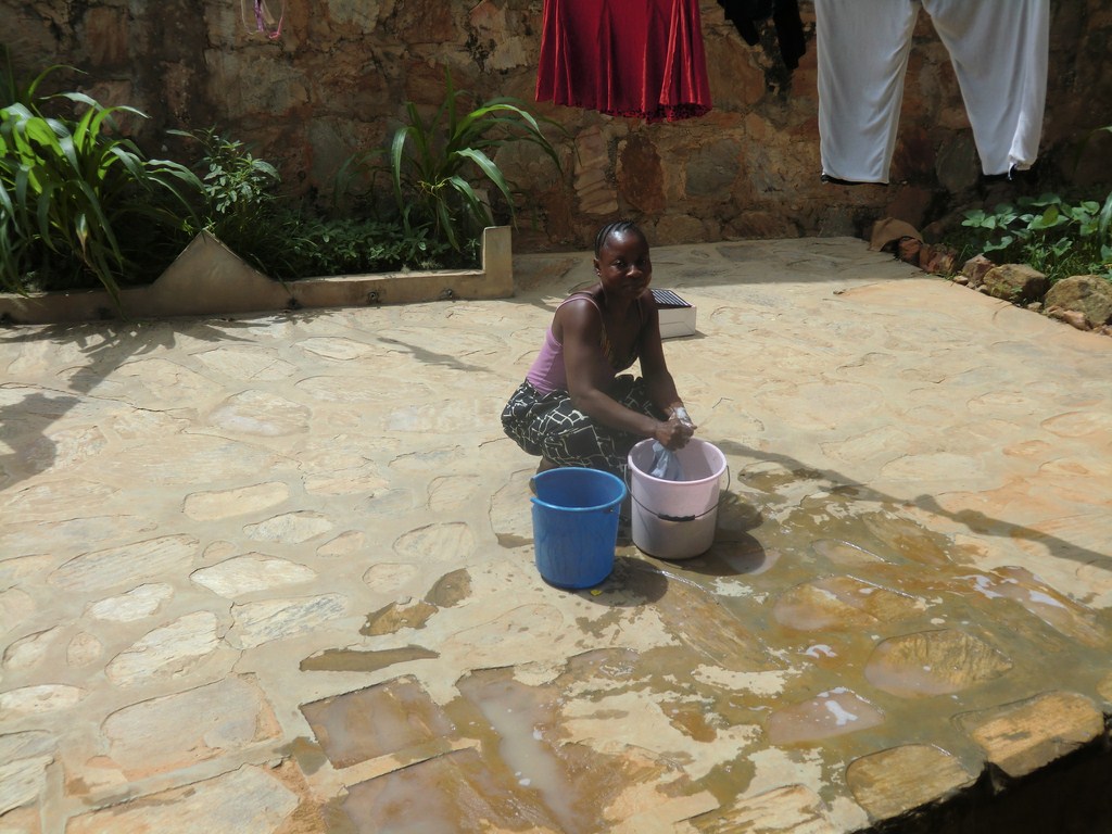 Idag lämnade vi vår tvätt. De två damerna som arbetar här i huset tog hand om den. De handtvättar och rent blir det och fort torkar den i 35 – 40 graders värme. Rena kläder är ett signum för en Kongoles, för att inte tala om skolungdomarna i sina vita skjortor och mörkblå kjolar – byxor. De är alltid rena, trots att tvättmaskin saknas i de allra flesta husen.