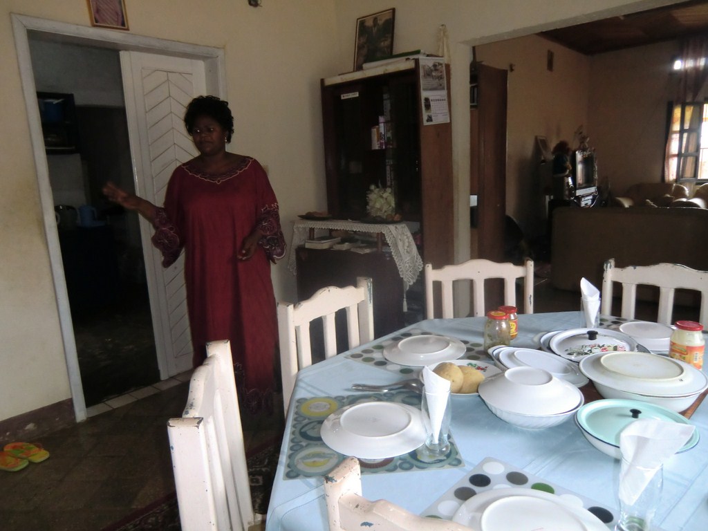 Till frukost kom Augustines yngre syster och hälsade på, Nsoma Astrid. Hon är läkare och gynekolog på ett sjukhus i Matadi och har fått sin utbildning i Japan. En mycket språksam dam och mycket social medan hon åt sin morgongröt.
