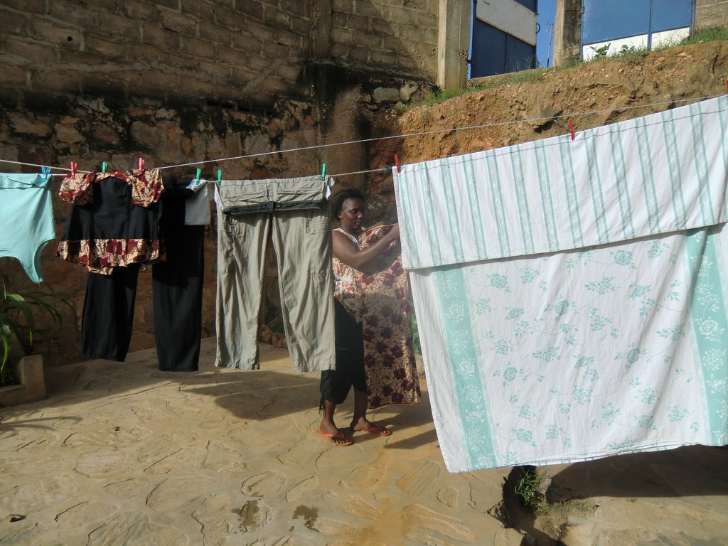 Idag har varit en tvättdag och tvättar det gör man ganska ofta. Kläderna ska vara rena. Det finns två damer som sköter mat och tvätt här i huset. Tyvärr har Augustine inte känt sig riktigt bra.