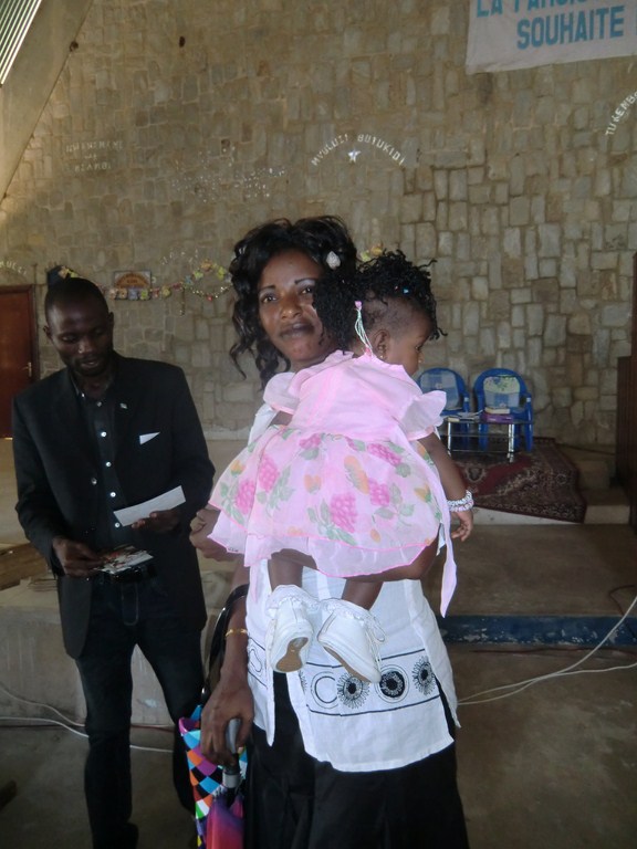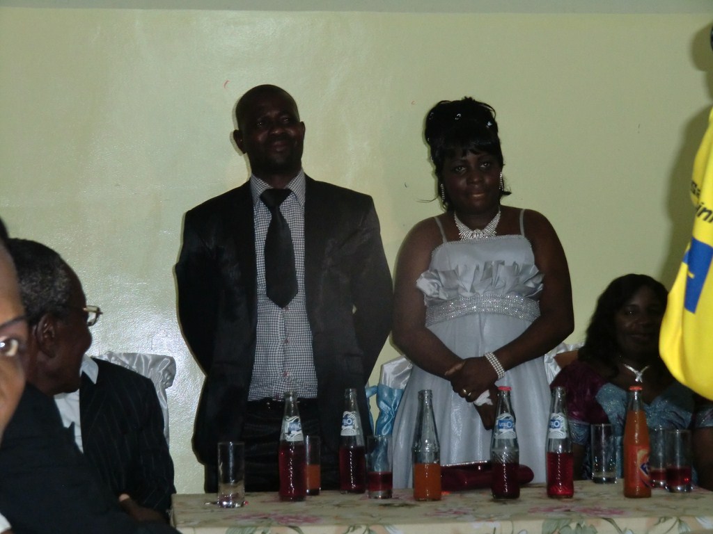Kl fem i eftermiddag var vi bjudna på bröllop och festen var i Ungdomscenter Marie Matty. Ett kongolesiskt bröllop sker i tre steg. Första delen handlar om att respektive släkter träffas med ceremonier i släkten. Det var denna del vi var inbjudna till. Bruden var dotter till biskop Paul Tekasala. Släkterna och gästerna samlades i en sal, vi var omkring 100 personer. Ganska snart blev det sång och ganska livfullt. Detta tilltog i styrka när sex tärnor först kom in och när sedan bruden kom blev ljudstyrkan orkan.