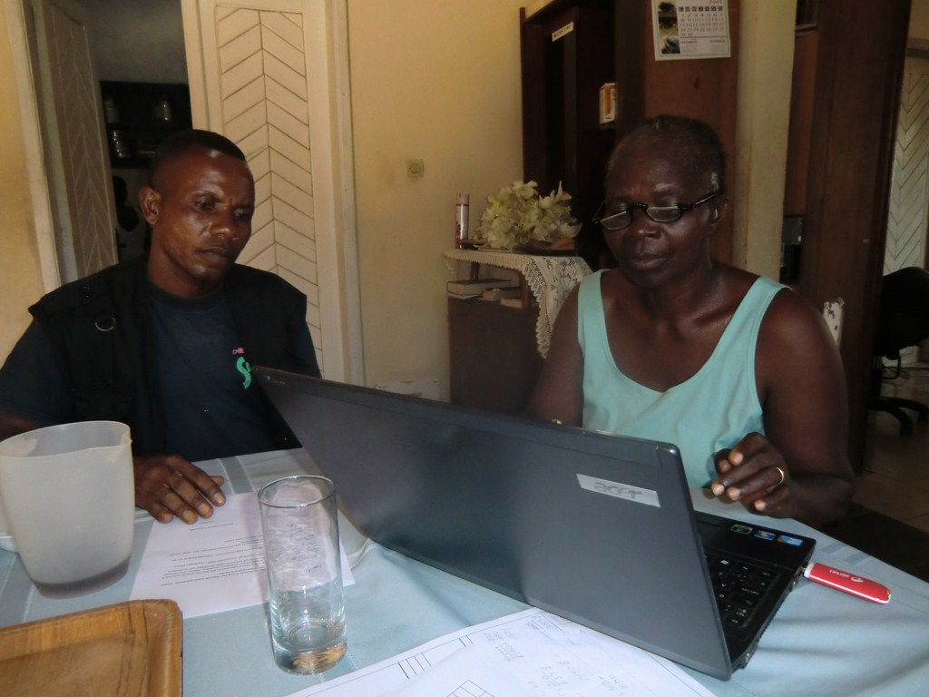 Åter till Yapecos hus och middag som idag bestod av kyckling, ris, maniok, sakasaka och till dessert bananer. Efter det en kort siesta och så kontorsarbete. Vardagsrummet hos Augustine och Yapeco är både matsal, kontor och TV-rum. Storleken gör att det räcker till alla aktiviteterna.