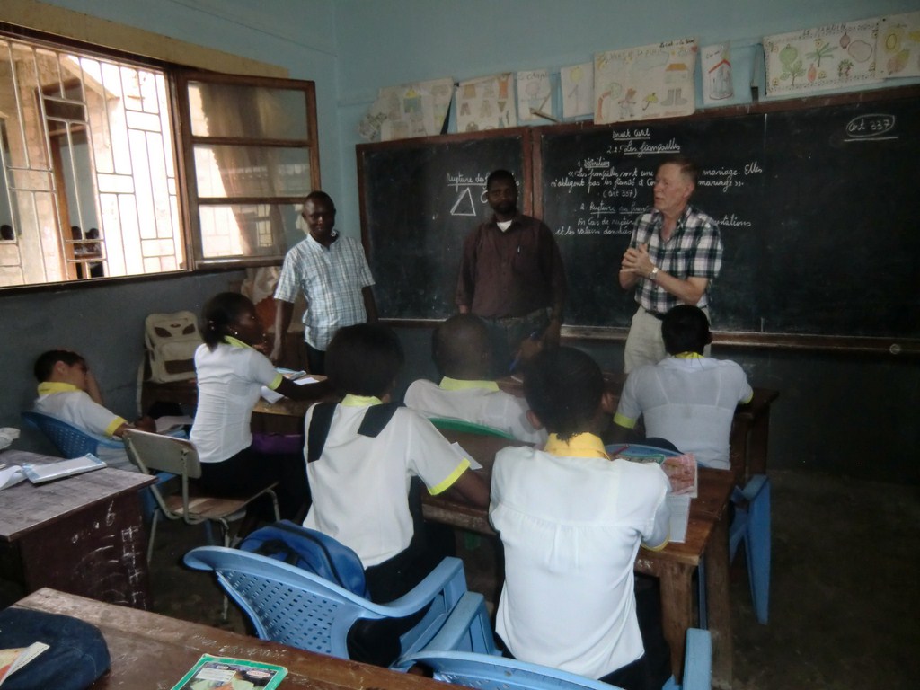 Efter detta goda möte besökte vi den privata skola där Yapecos och Augustins barn går. En belgisk skola. Min tolk, en av lärarna, påstod att det nog var den bästa skolan i Matadi. Primär- och sekundär skola med 700 elever. Elever i primärskolan går på förmiddan och sekundär går på eftermiddan. Vi gick runt och besökte alla klasserna, ett tiotal. Jag fick möjlighet att hålla ett litet tal till klasserna. Det kändes inspirerande att tala till Kongos ungdom och dess framtid. Det är de som ska forma det nya Kongo. Enligt Borgmästaren ska Kongo genomgå stora förändringar till 2025. Det hoppas säkert alla, inte minst Kongos folk att det ska förverkligas. Kongoleserna, dem vi träffar i alla fall, är trötta på de tingens ordning som råder idag.