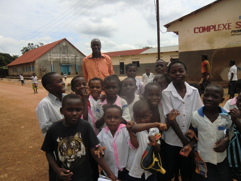 Vi stannade till i Inkisi och hade ett möte med två av våra entreprenörer, gick igenom deras affärer och avbetalningarna de gör. Vi fick också ett samtal med rektorn på en skola intill våra entreprenörer och en grupp barn ville gärna vara med på ett foto.