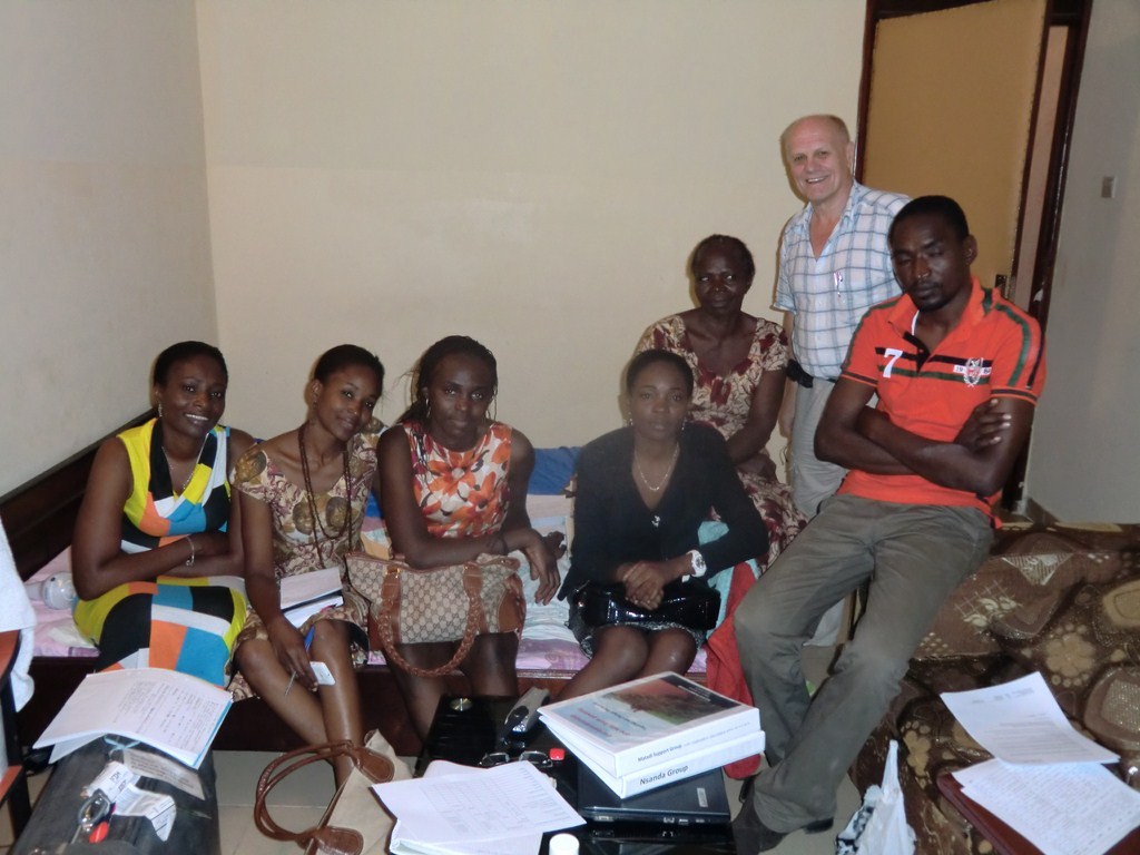 Kl 17 hade vi möte med familjen Nyambudi och om Nsanda Group. Projektet börjar ta form och det gäller att hela familjen är engagerad och var och en drar sitt strå till stacken. Utan hårt arbete inget resultat. Familjen består av mamma Julienne, döttrarna Nina, Zola, Emma och sonen Tutondele och hans fru Amirance. Pappan Clemence är i Nsanda och sköter jordbruket. Vi gick igenom uppgifter inför den stundande skörden av maniok och vilka insatser som krävs av var och en.