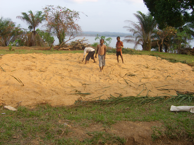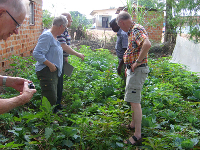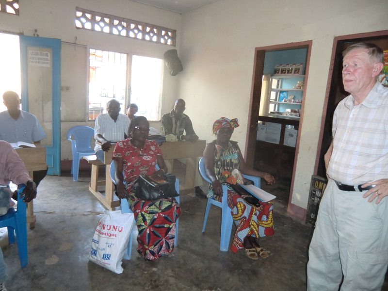 Åter till Nganga och Therese till middagen kl 13.30. Vegetariska köttbullar gjorda av malda pumpafrön serverades med ris, potatis, grönsaker och maniok. Smaklig måltid. Därpå tillbaka till Emys kontor och skolsal på 5×5 meter där vi har vår utbildning, 12 entreprenörer kom, de flesta igång med någon verksamhet. De arbetar inom jordbruk, växtodlingar och djuruppfödning, bageri, transporter, livsmedel- och klädhandel, internetleverantör, internetcafé, byggnadssnickare och restaurang. Yapeco var och fixade lite dricka och kex, skönt att få skölja strupen för idag var det riktigt varm, någonstans mellan 30 – 40 grader