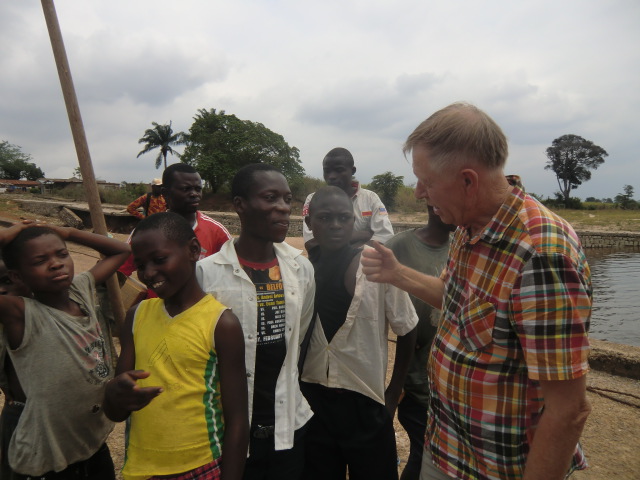Två av våra gamla vänner i Kimbemba kom också och hälsade på oss. Vi förstår inte hur de alltid kommer till färjestället när vi kommer. Det är alltså de ungdomar som vi blev bekanta med oktober 2010 då vi stannade på en skolgård i byn för att reparera bilen.