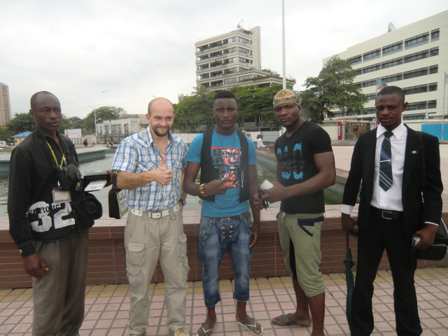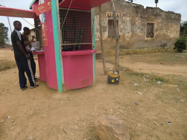 På vägen till detta möte träffade vi en svensktalande dam, Jacqueline Luezi, kanske runt 70. Hon berättade att hon togs om hand av missionär Ester Abrahamsson från Lysekil efter att ha mist sin mamma som bebis och bodde hos Ester tills hon var 15 år. Vi passerade också en riktig entreprenör som satt in en liten kioskbyggnad. Utanför stod en liten Hondagenerator och tuffade och en sladd in genom väggen. Där stod folk i kö för att ladda sina mobiltelefoner som nästan alla kongoleser har i sin ägo. Här finns alltså ingen elektrisk ström i staden. En entreprenör hittar lösningar på nästan allt.