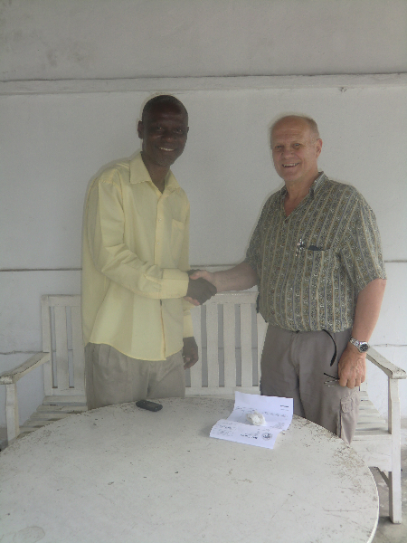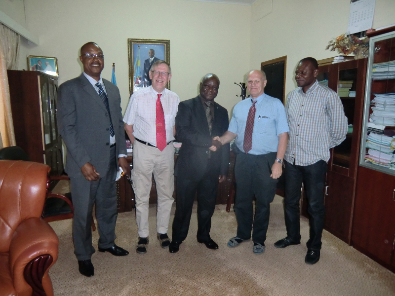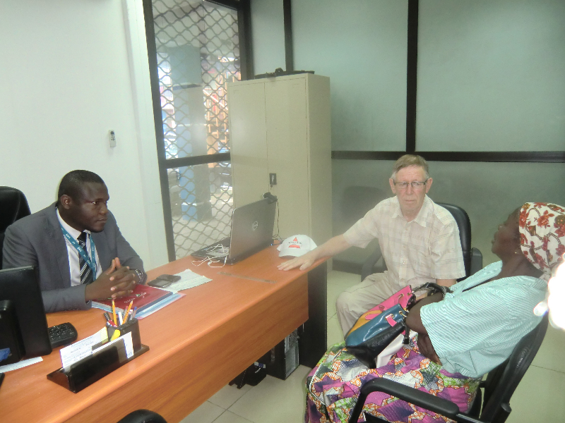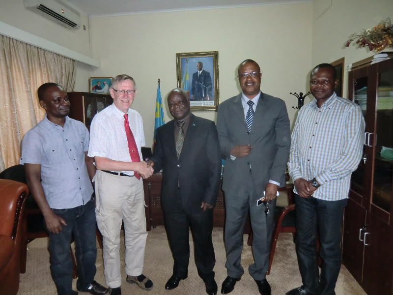 Vid ett-tiden kom Luthelo Muller och hämtade oss. Han hade då ordnat ett möte med Ministern för mark, fastighetsbildning och lantmäteri, professor Mbevinga Bila Robert. Vi fick en fint möte med honom. Vi introducerade MSG och berättade att vi arbetar med utbildning i entreprenörskap och försöker importera innovationer. Vi presenterade ECO-huset och vi föreslog att det byggs ett demonstrations hus  i Kinshasa eller i Matadi.
