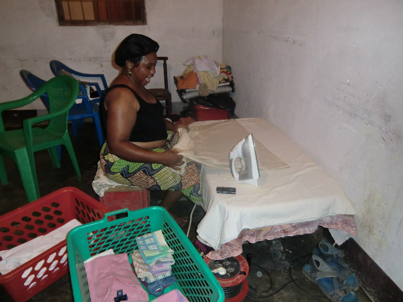 Här i familjen hjälps man åt med det dagliga arbetet. Vattnet har jag skrivit om förut. Hämtningen sköter Yapeco och sonen Stig. Städningen sköter dottern Signe en hel del, men också matlagning och diskning. Mamma Augustine och en inneboende Rosette delar givetvis på de olika hushållsarbetena. Fem personer bor permanent i huset och nu under tre veckor har vi varit tre gäster, två mundele och en ndombe, vår tolk och föreläsare Julienne. Hon har också bidragit till hushållsarbetet. De två mundele har burit in vatten vid ett par tillfällen, enda bidraget till husets bestyr.