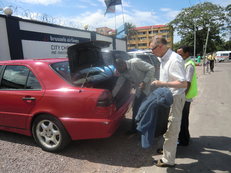 Efter frukosten kom vår chaufför Pascal med sin Mercedes och hämtade oss för att checka in på Air Brussels kontor i Kinshasa. Där tog det tid men vi hade ingen brådska. Vi hade gjort upp kvällen innan att Luthelo Muller skulle komma och hämta oss. En god kvinnlig entreprenör hade gjort en stor låda med smörgåsar som hon sålde till hungriga resenärer och en annan sålde dricka. Vi gjorde affärer med båda och på så vis ordnade vi vår middag medan vi väntade.