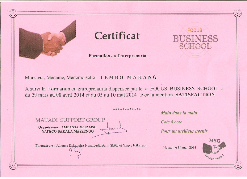 Sedan 2007 har vi arbetat med ett flertal projekt i Kongo. Den mesta energin lägger vi på undervisning i entreprenörskap. Vi är övertygade om att företagande är en väg ur fattigdom. Entreprenörskap skapar resurser på det personliga planet, såväl som för familjen och i samhället. Dessa resurser behövs för att bygga skolor, erbjuda undervisning, bygga sjukhus som tillhandahåller sjukvård och skapa sociala trygghetssystem.