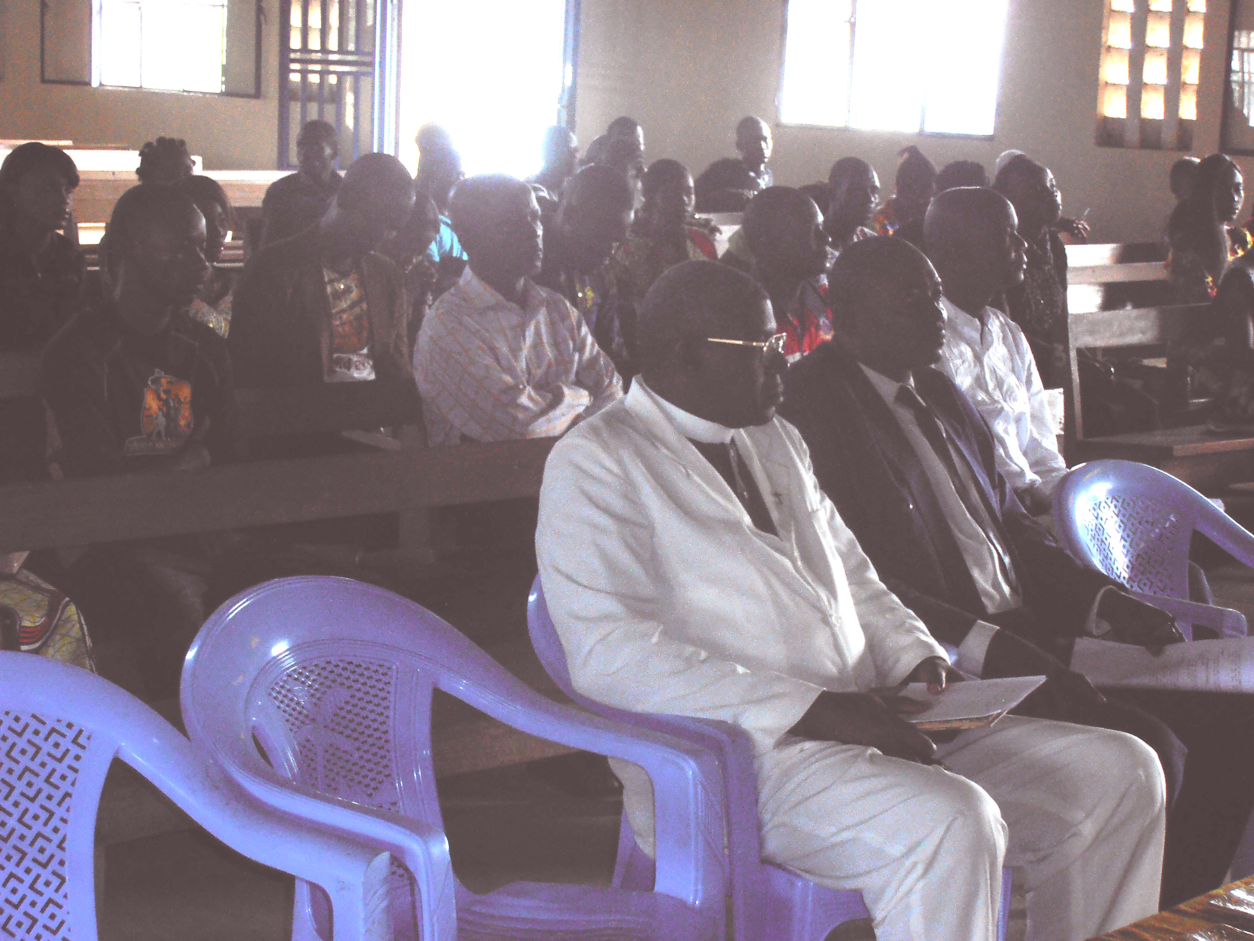 Det gick verkligen bra, ja fantastiskt bra. På söndagen ersattes predikan av att pastor Matthieu Diangitukulu svarade för inledningen från predikstolen, sedan steg han ner och jag började med bildvisning på fondväggen i Baobab-kyrkan och det gick mycket bra. Det pågick under två timmar, men församlingen blev inte trött. Det kom fler än fyra frågor och vi försökte svara med hjälp av den Helige Ande, i enlighet med vad det står i våra böcker.